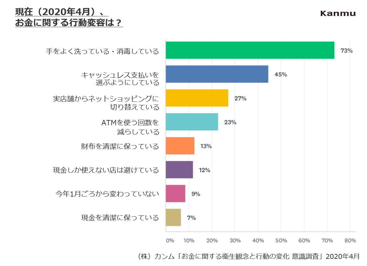また、現金との接触を避けるさまざまな行動が報告されています。